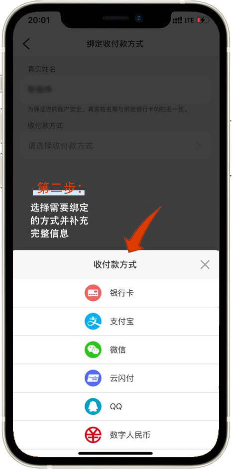 选择需要绑定的方式并补充完整信息