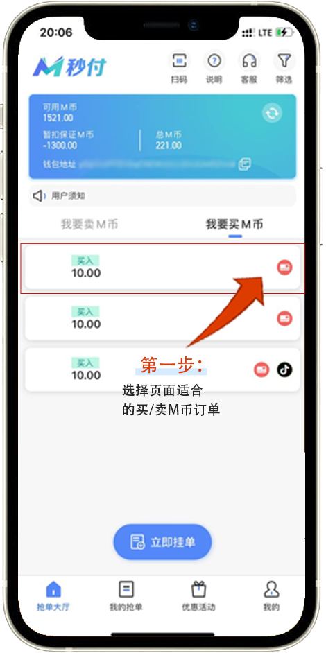 选址买-卖M币,并选择挂单金额及方式