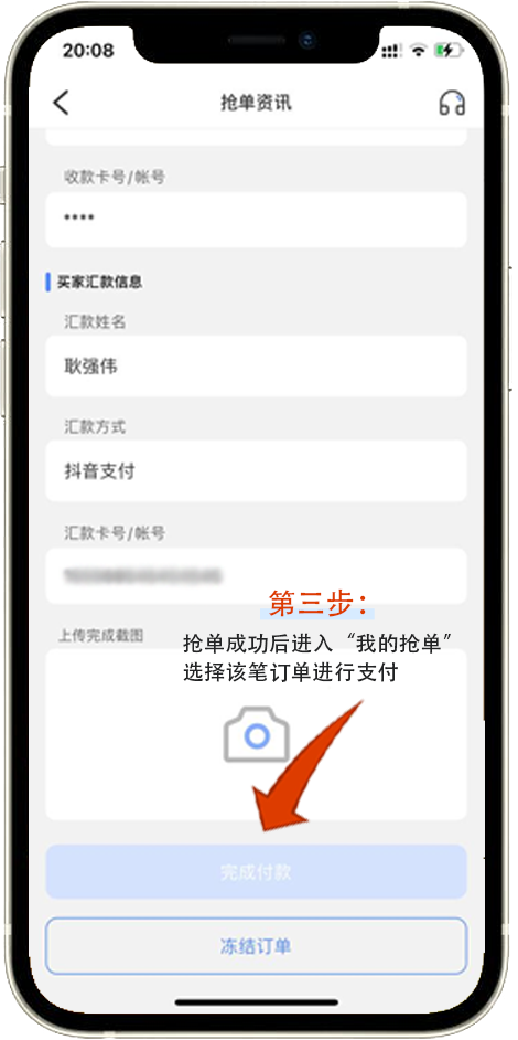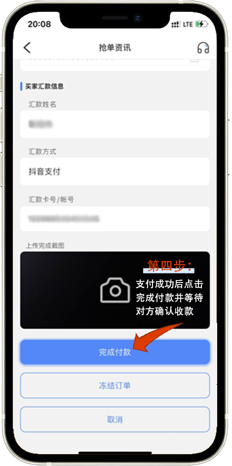 支付成功后点击完成付款并等待对方确认收款