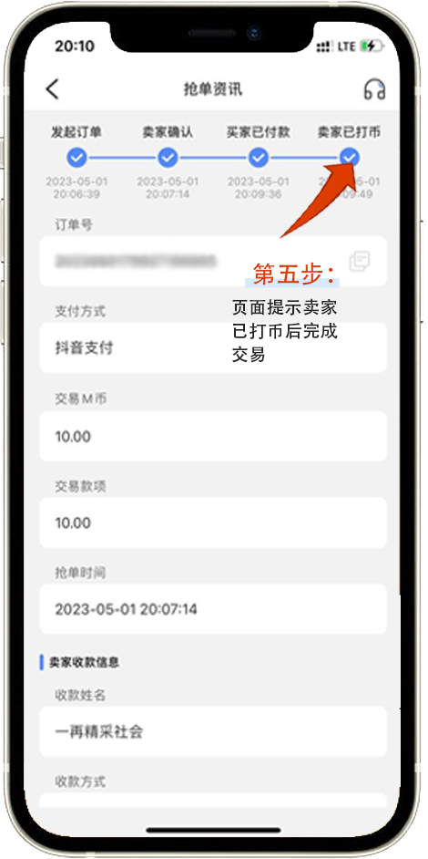 页面提示卖家已打币后完成交易