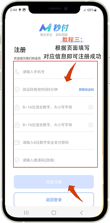 根据页面填写对应信息即可注册成功